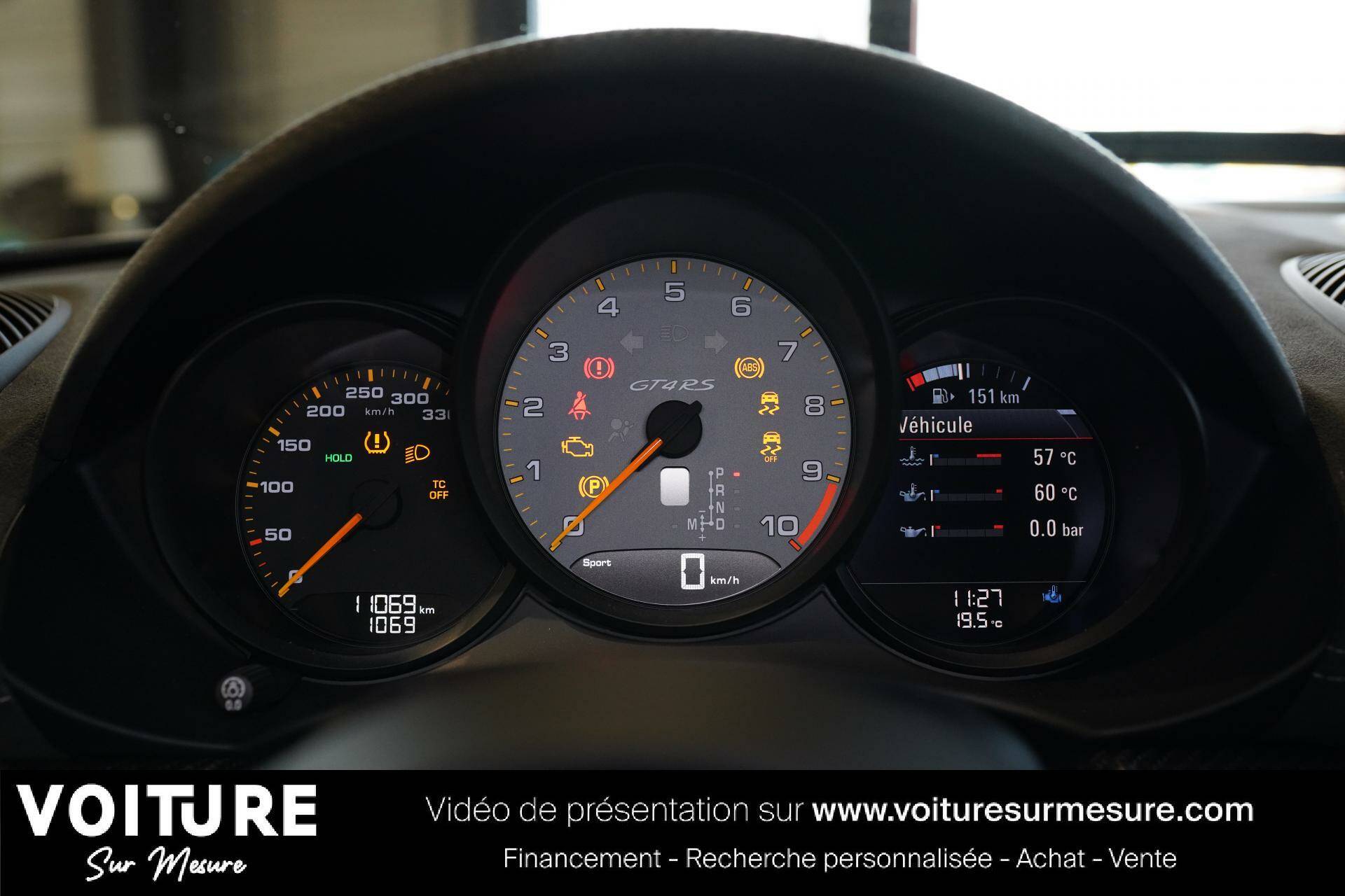 Cette Porsche GT4 RS, bien optionnée, vous est proposée au prix de 157 990 EUR hors malus, soit 193 990 EUR malus inclus, ou 191 490 EUR en cas d'immatriculation après 36 mois (dépôt du dossier à partir du 18/04/2026). Véhicule suivi, entretien Porsche, pneus neufs.